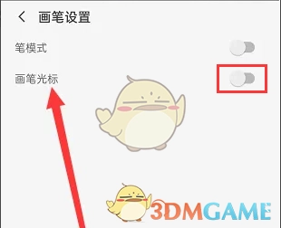 4、随后便会进入“画笔设置”界面,在其中找到“画笔光标”选项,将该选项后方的开关按钮开启即可。