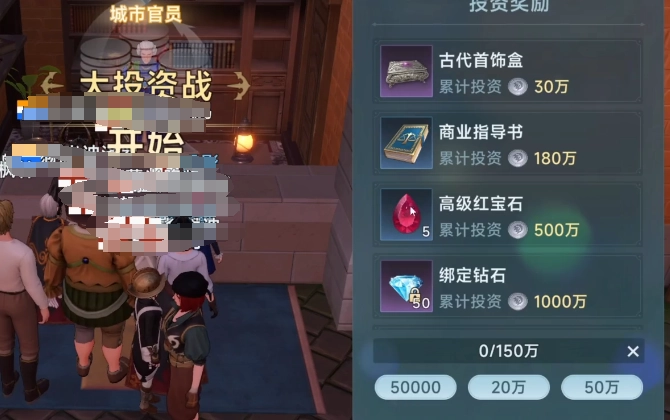 首先是大投资战的时间安排,游戏中每周三会开启大海战,下一周则进行大投资战,这两种玩法在游戏里交替出现。想要参与该模式十分容易,每次大投资战开启后,会设定目标城市,玩家需先前往目标城市找到执政官,从这位执政官处接受任务。之后,还会给玩家指定特定城市,领取任务即可开启挑战。