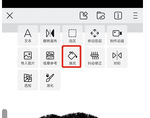 4、于上方菜单栏里,寻得【填充】选项,点击该选项后,返回画布并点击闭合线稿内的任意一处区域,如此便能完成上色操作。