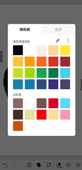 3、在下方菜单栏里点击【调色盘】,从中挑选一个我们要用于填充的颜色,具体参照下图: