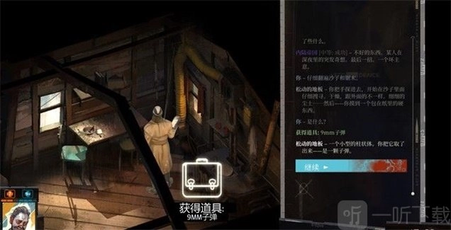 你可以在桌子下的木地板缝里找到一颗手枪弹药。