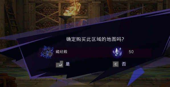 藏经阁地图和上城地图一样,都需要购买。其所在位置是下城大门图案房间正上方的第二个房间,可从藏经阁一开始就能到达的瓦格瓦格树下,下去后往右,再往上走就能找到。