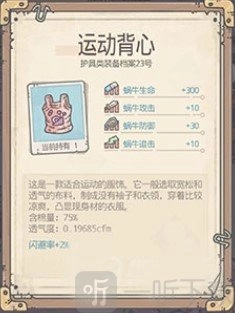 1、运动背心具备增加闪避率的属性,凭借这一属性,我们在对战时能够直接闪避免受敌方造成的伤害。