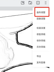 1、第一步,点击右上角的三条横线,在弹出的菜单里,有一个【画布调整】选项,具体位置如图所示: