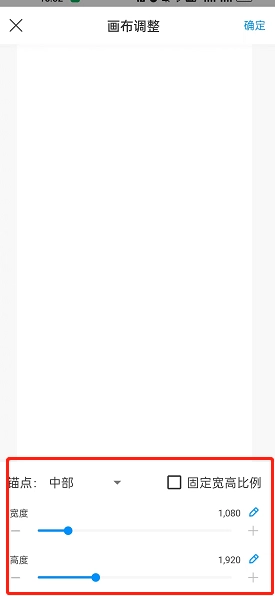 2、点击进入【画布调整】菜单,在此即可对当前画布执行放大或裁剪操作。您既可以通过拖动宽和高上的点来改变大小,也能点击右侧的小笔图标,直接输入期望的尺寸。右侧还设有固定宽高比例的工具,十分便捷,具体如图所示: