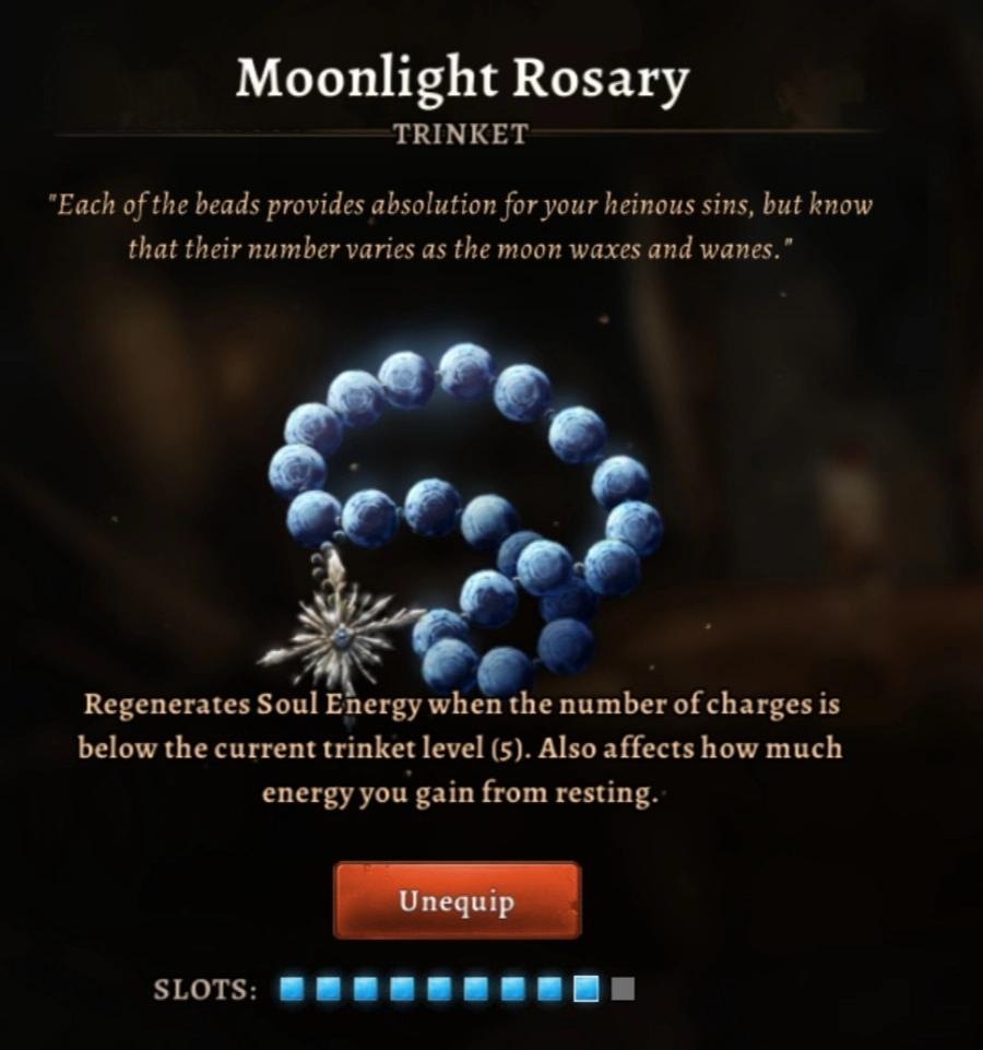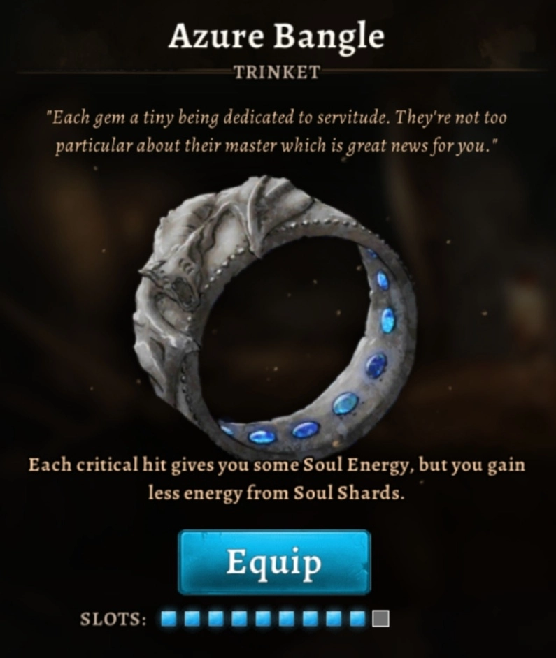 (温馨提示:加点加到第四个时,会在你拾取碎片时额外增加所获得的能量,同时提高饰品佩戴上限,最多能够佩戴十个饰品。你留意到饰品下方的小方格了吗?那实际上就是装备栏哦。)