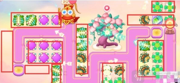 1、本关卡可使用的炮塔有:毒针、风扇、魔法球、多重箭、鱼刺,此关我们主要依靠鱼刺进行防御。