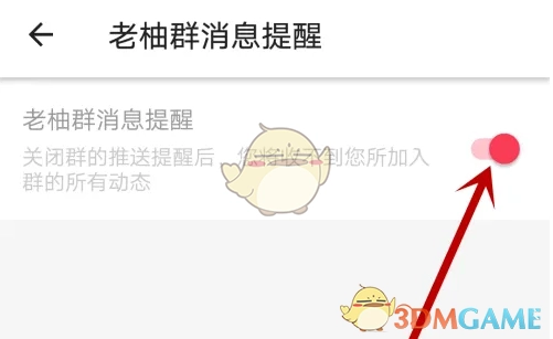 4、进入老柚群消息提醒界面后,将老柚群消息提醒后的滑块滑动至灰色。