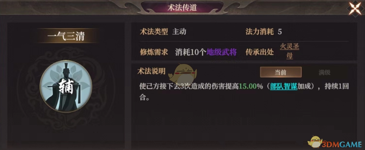 适用此术法的武将:智谋型且爆发高的阵容辅助,若有此类武将,务必携带。