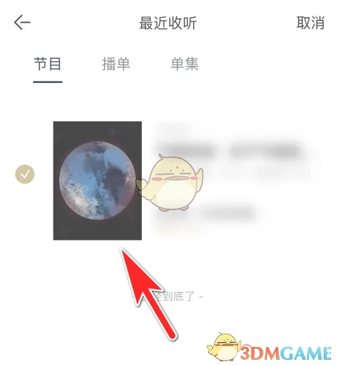 4、选中目标收听记录的图标,随后点击删除,就能删除本人最近收听的记录。