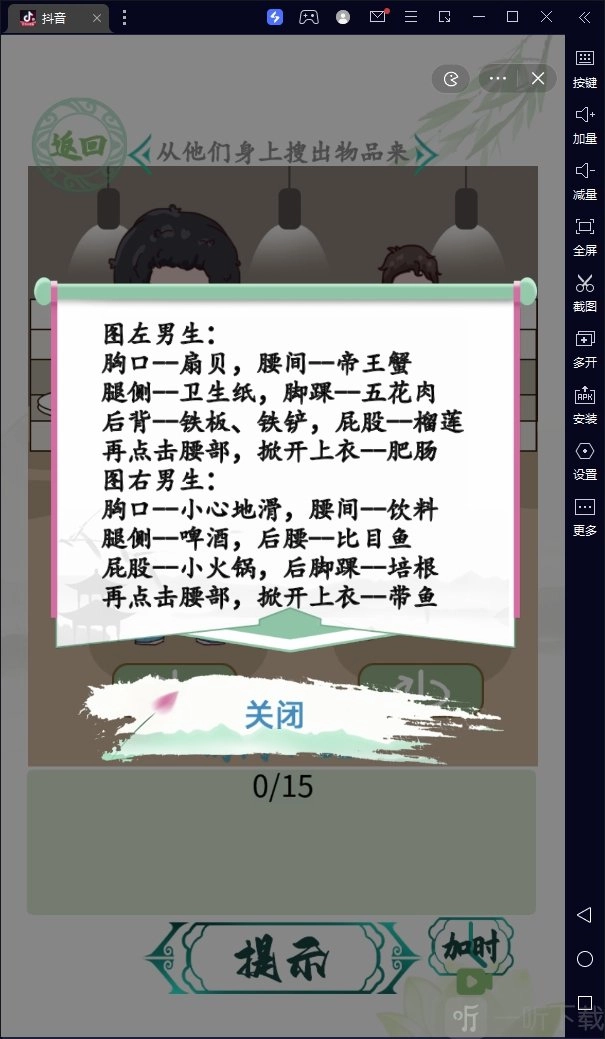 2、大家根据提示,在相应的部位点击搜查即可。