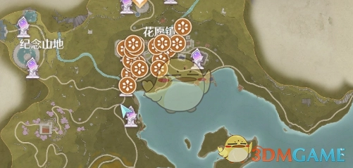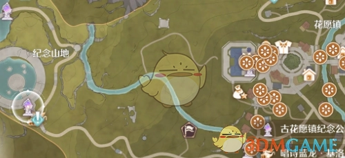 1. 第一步,我们要打开地图,选择前往花愿镇,抵达花愿镇的纪念山地。