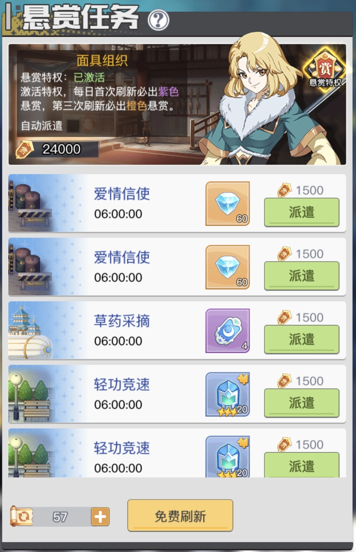 参与赏金猎人玩法,完成指定要求的派遣任务可获得对应的任务奖励,奖励中包含大量星钻。