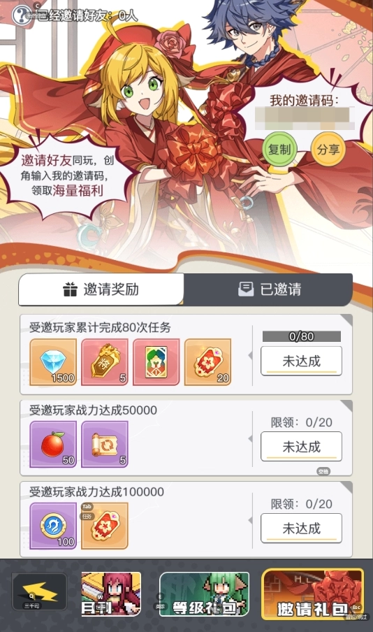 诚邀好友一同畅玩,只需输入邀请码,海量福利即刻到手!福利涵盖大量星钻、点将令,还有三阵营神话自选礼包!各位大人,如此良机,切莫错过呀~