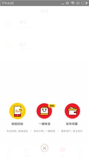 1、首先打开软件,然后点击页面下方的出售,选择“发布闲置”;
