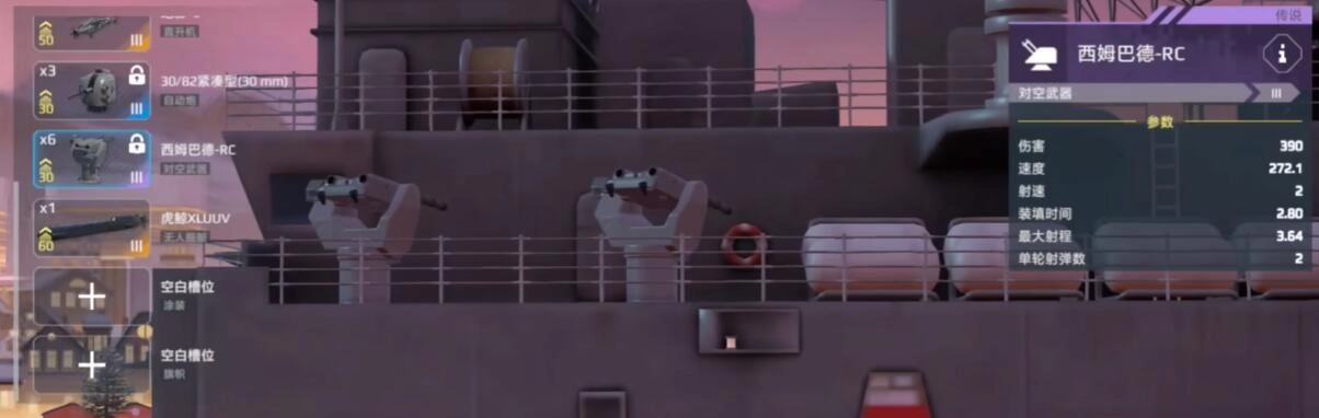 资源分配方面,优先对火箭炮和主炮进行升级。金币优先用于将ASW火箭炮提升至紫色品质(此时装填时间缩短至6.3秒),主炮则提升到蓝色品质,升级时射速为优先考量因素。使用钻石购买“极光屏障”涂装(可增加10%拦截率),以此来补足防空方面的短板。每周参与活动来兑换火箭炮碎片,鱼雷和直升机使用系统赠送的蓝色品质即可,无需额外投入资源。