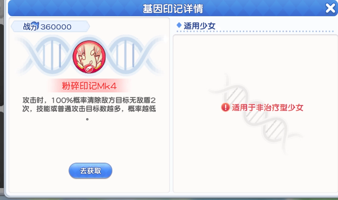 粉碎mk4:在95%以上的情况来说和mk3几乎没有差别。Pve的情况下所有的会攻击对方的辅助只要有空位置都可以带个粉碎3或者粉碎4来应对无敌盾。不需要刻意获取,等歪或者就用mk3即可(即使没有mk3也不从超凡箱子开)。