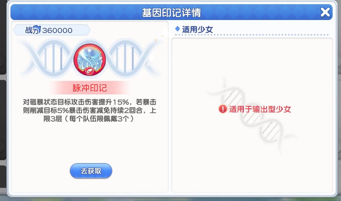蓄能印记:特别注意多动队不能带。会干扰主C最高能量,导致多动命中率下降。pve前期可用,后期不需要,纯pve玩家拿一个即可。