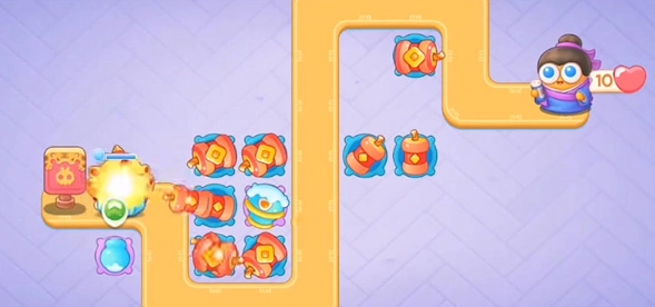 2. 把默认的炮仗塔升至满级,朝着上半部分的壶射击。