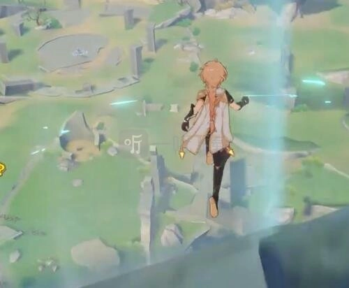 我们可以看到在风龙废墟四周是有风场的,我们找到风场并跳跃一下,借助风场的力量飞起来,然后朝着西瑞飞。我们需要注意的是,我们的属性应该是风属性,不然就会沾染其他的元素。