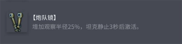 同样在静止三秒后启动,使观察范围提升25%,可有效增大侦查半径,与伪装网配合打造“隐身眼灯”的战术。