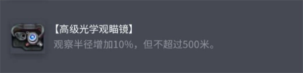 即便处于移动状态,依然能够正常发挥功效,可使观察距离提升10%(但提升上限为500米)。该功能尤其适用于不断转换地点的动态侦察场景。