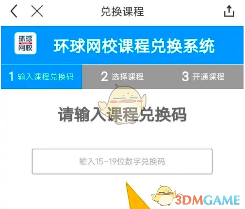 3、完成页面跳转后,在图中箭头指示的位置输入课程兑换码。