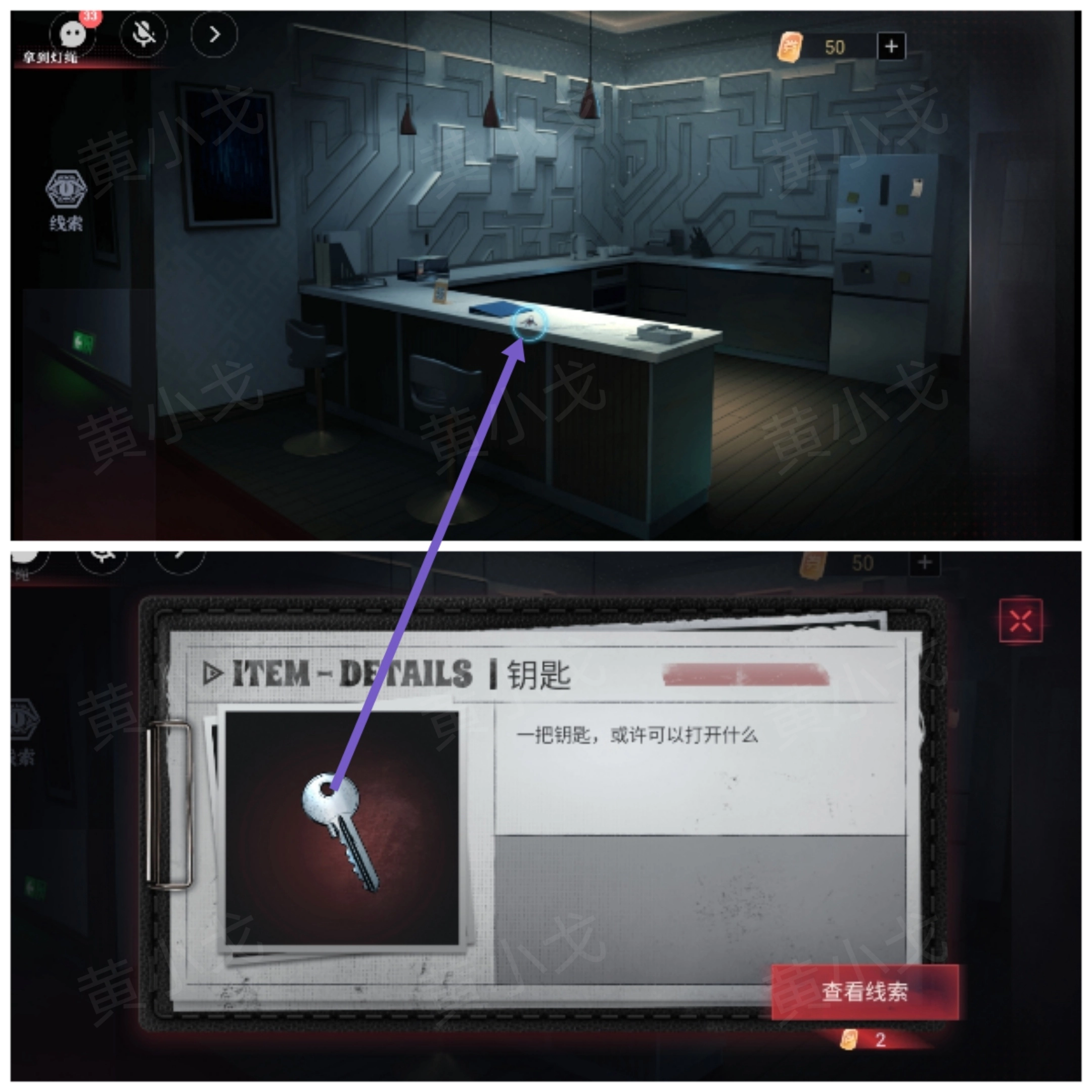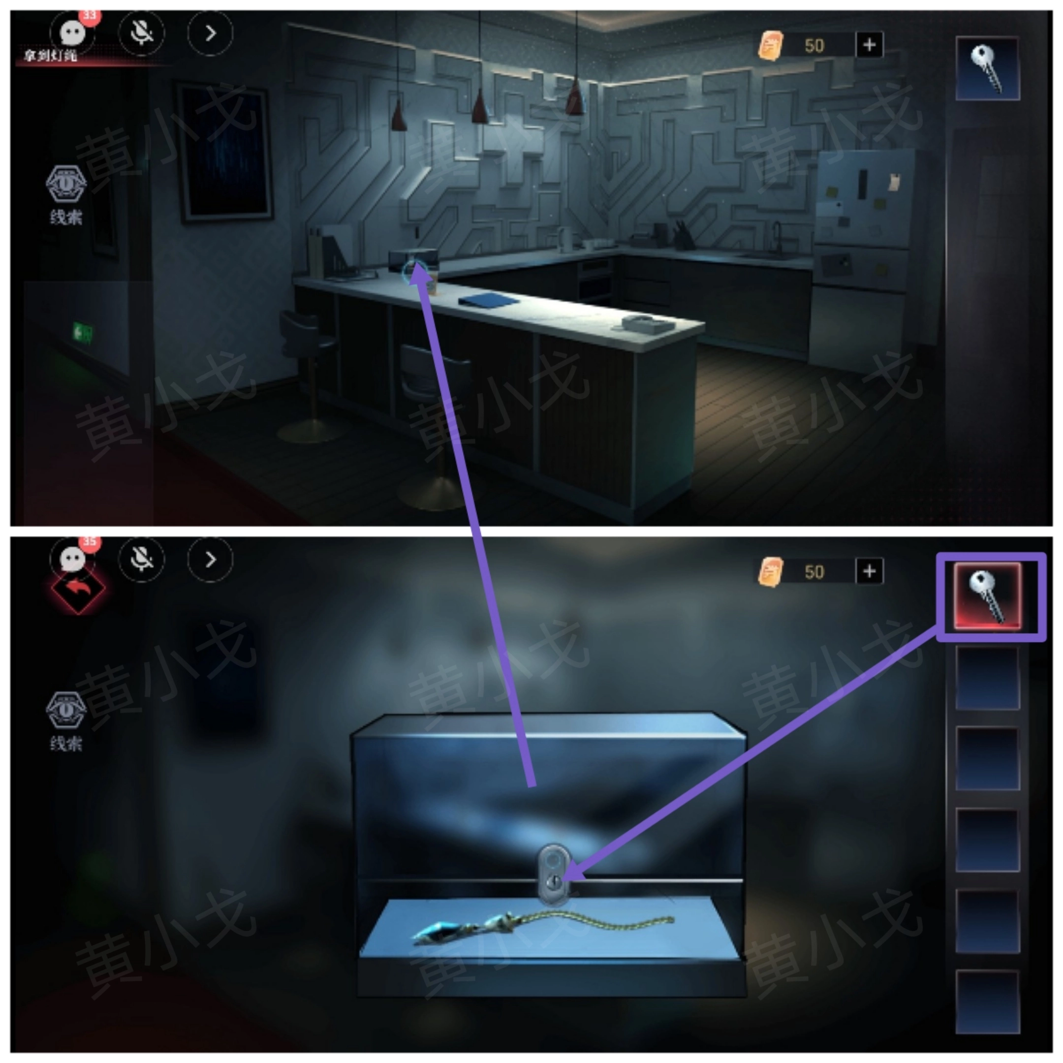 3. 轻触吧台上的玻璃盒子,接着用钥匙将其开启,随后就能获取到灯绳。