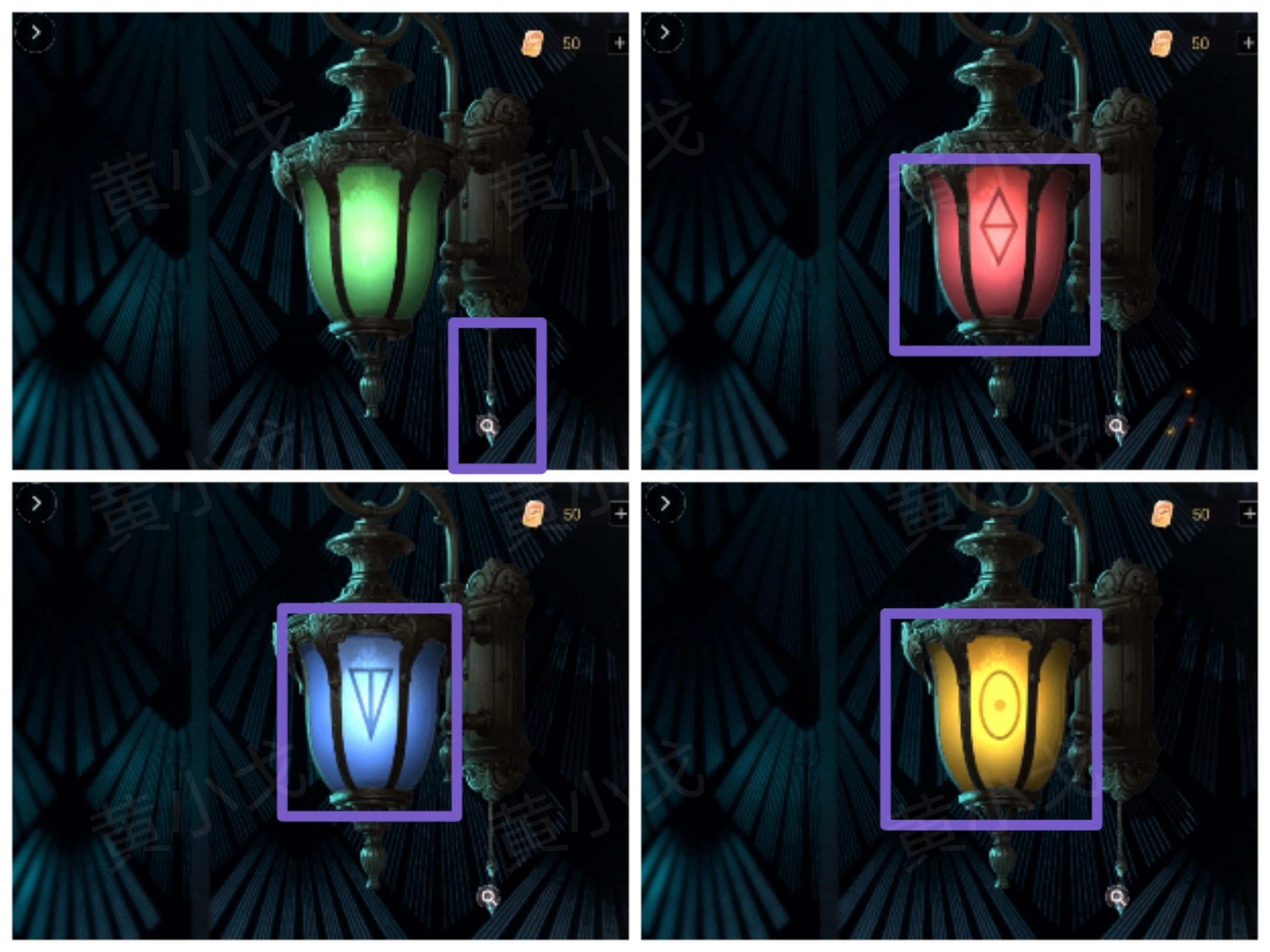 5. 拉动灯绳,获取符号与颜色线索,总计三组。