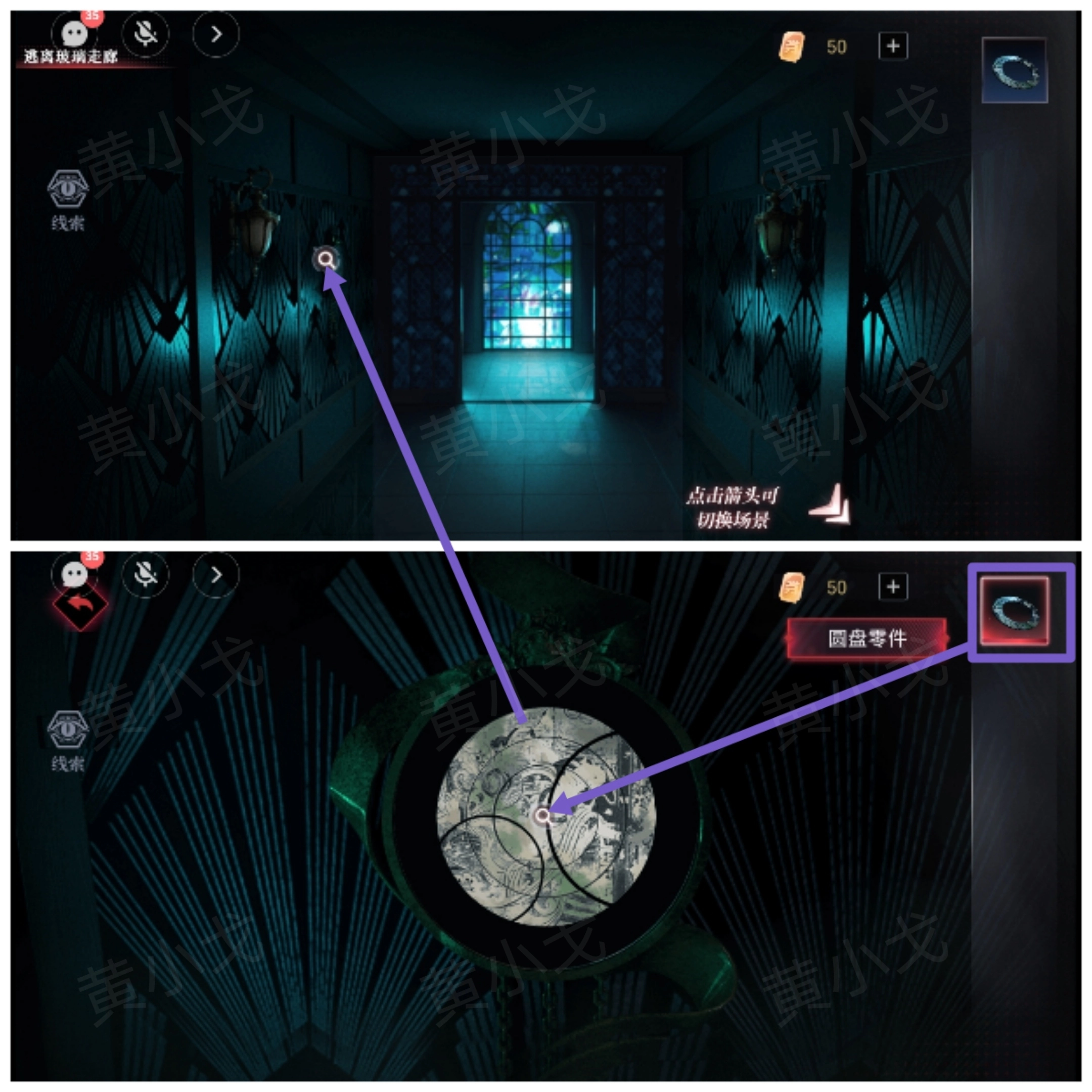 8. 轻点左侧墙壁上的圆盘机关,把【圆盘零件】安装上去。