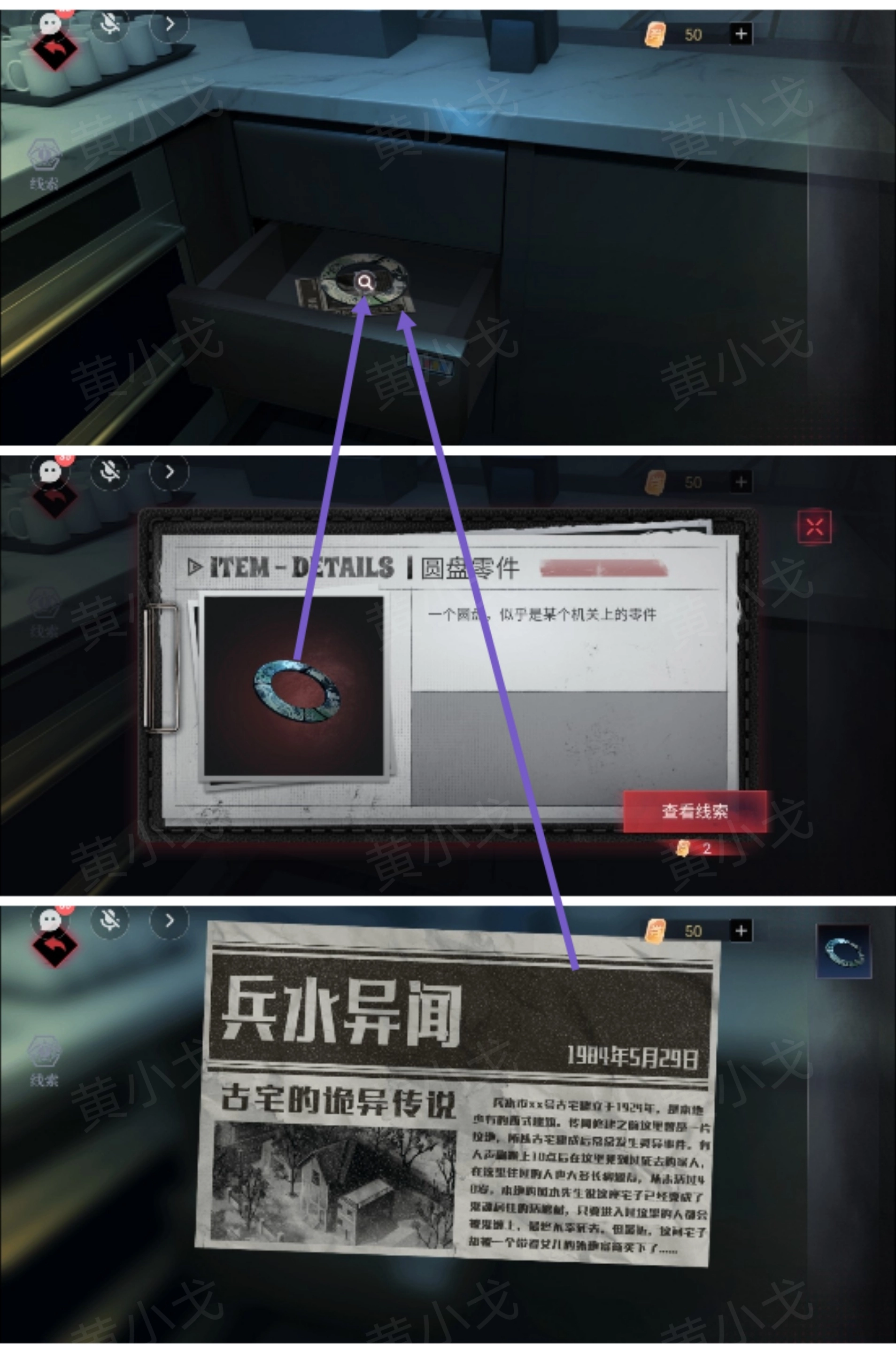 7.拉开抽屉,获取【圆盘零件】,浏览报纸上的内容