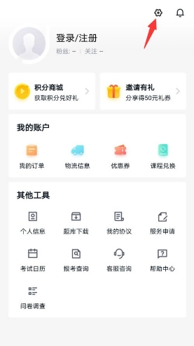 3、进入页面后,选择页面右上角的设置选项。