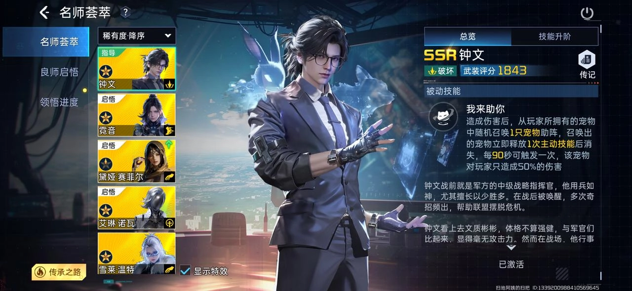活动进行时,限定SSR导师「钟文」的获取几率提高。限定活动池【宠物集结】会一直开放到4月29日上午6点。相信这位全新导师的技能,必定能成为幸存者们在征战途中的有力帮手!