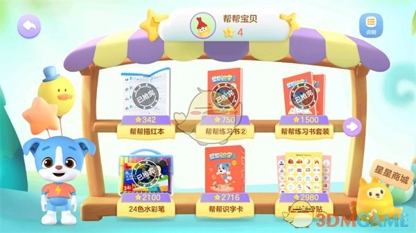5、完成任务会获得星星,星星可在商城购买东西;
