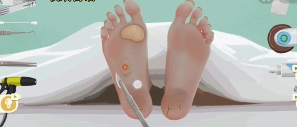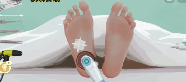 4、最后我们处理完伤口,用工具打磨脚底板,喷上药水即可顺利通关了。
