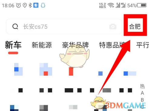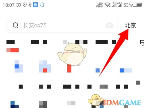 2、接着在已打开的新车界面中,点击右上角所显示的城市位置,具体位置如图所示。