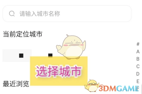 3、在弹出的选择城市界面中,找到想要设置的城市,并点击该城市。具体操作如以下图示。