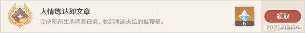 冒险阅历增加200,获得原石30颗,得到教令院举荐信1封。