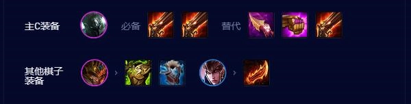 推荐卡牌或者EZ,其中一个能稳定做出装备,另一个提供的基础装备更为丰富(此阵容对装备依赖度极高,对反曲之弓的需求特别大)