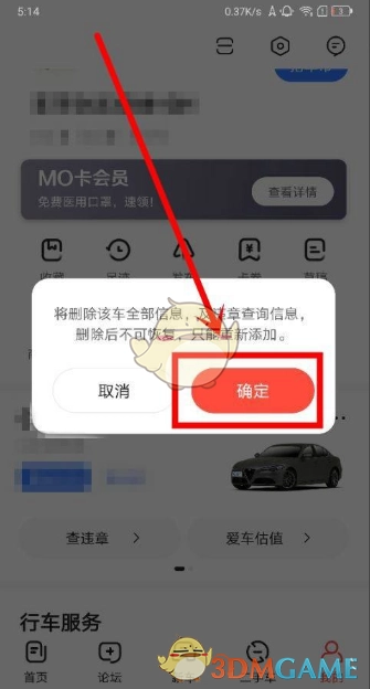 3、进入删除车辆页面后,在该页面找到确定按钮,点击就能成功删除车辆信息。
