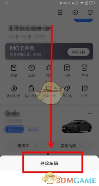 2、进入“更多”页面后,在该页面找到“删除车辆”选项,点击进入。
