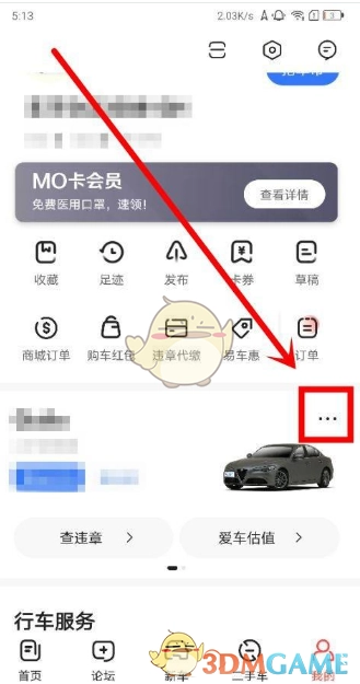 1. 打开易车app,进入“我的”页面。在该页面已添加的车辆信息右上角,找到更多图标并点击进入。