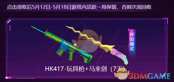 4、5月12日至5月18日可领取:HK417 - 玩具枪 + 马来剑(7天)。