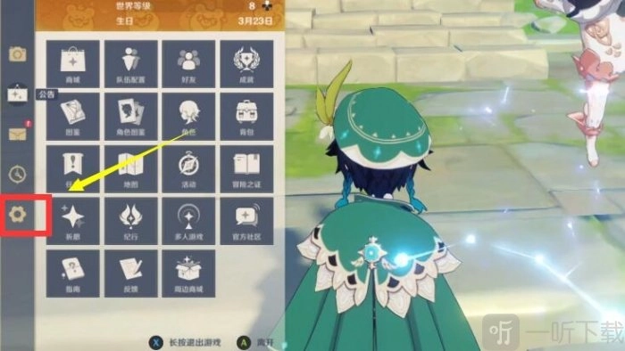 1、第一步,自然是进入游戏,点击左上方的派蒙图标,接着点击【设置】。