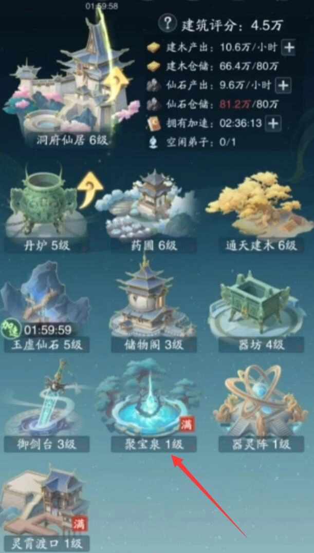 在游戏里,聚宝泉采用抽取的方式来获得古宝以及更为稀有的仙宝。每天第一次抽取必定会消耗免费次数,推荐在游戏内时间的子时三刻,也就是玄阴潮汐触发的时候进行抽取,这个时段抽取的概率会提高大约15% 。聚宝泉的建筑等级对产出品质有着直接影响,建议优先使用木材和灵石将其提升至5级,这样就能解锁一项保底机制,即每日首次免费抽取必定会获得蓝色品质及以上的古宝。另外,抽取时要留意,十连抽存在隐藏福利,前5次十连抽必定会获得1件紫色古宝,不过需要间隔24小时再次抽取才能激活该福利。