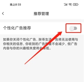 若用户想要关闭个性化广告推荐,操作十分简便。仅需打开胖乖生活APP,进入“我的”页面,轻点设置图标,进入设置界面。接着,在众多选项中找到“推荐管理”并点击,最后点击“个性化广告推荐”右侧的开关按钮,将其关闭。关闭此功能后,系统便不会再向用户推送个性化广告,从而提升用户的使用体验。