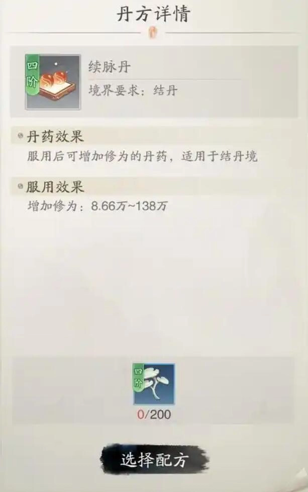 在结丹期之前,每天服用丹药的上限是3次,优先消耗紫色续脉丹,每次服用能获得1200修为。在突破大境界之前,一定要把当天的服用次数用完。比如说从筑基境界提升到结丹境界时,先吃满3颗紫色续脉丹再进行突破,第二天次数重置后,又可以服用3颗。每周有购买限制的造化丹一定要买,服用之后,1小时内挂机所获得的修为会增加20%,建议在双倍活动日搭配加速符一起使用。炼制出来的多余绿色丹药,可以分解为丹尘。