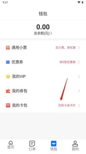 2、若当前持卡数量为0,点击“我的卡包”即可进行绑卡操作。