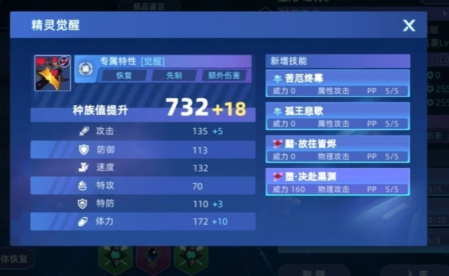 星光纳多雷的种族值总和达到680 ,具体各项数值为:体力140、攻击110、防御100、特攻90、特防100、速度140。从种族值的分布情况不难看出,体力与速度方面表现较为出色。较高的体力种族值,为星光纳多雷奠定了良好的生存基础,使其能够承受一定程度的伤害。而较高的速度种族值,则让星光纳多雷在战斗中具备较快的出手速度,搭配先手技能或者干扰技能,便可以在对战初期抢占主动地位。其攻击种族值也具备一定根基,确保了物理输出能力。双防种族值相对平衡,尽管并非顶尖水平,但在属性技能的辅助下,同样能够有效地抵挡对手的攻击。然而,特攻种族值相对偏低,因此在构建技能搭配以及制定战斗策略时,应当着重于物攻技能的运用。