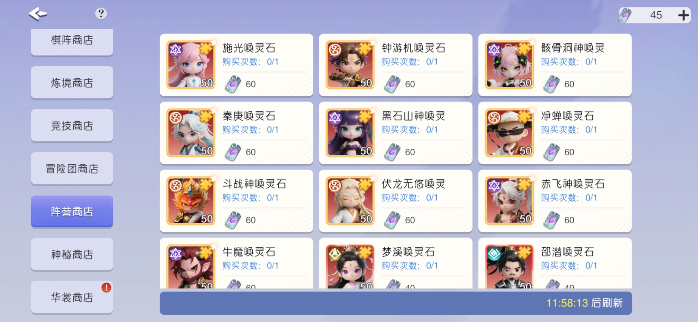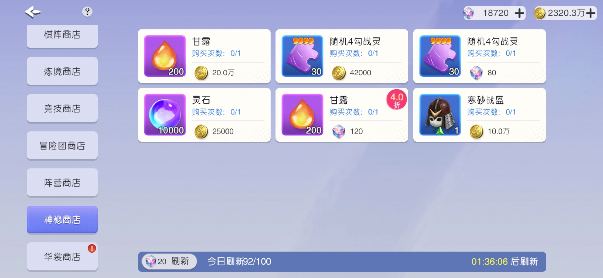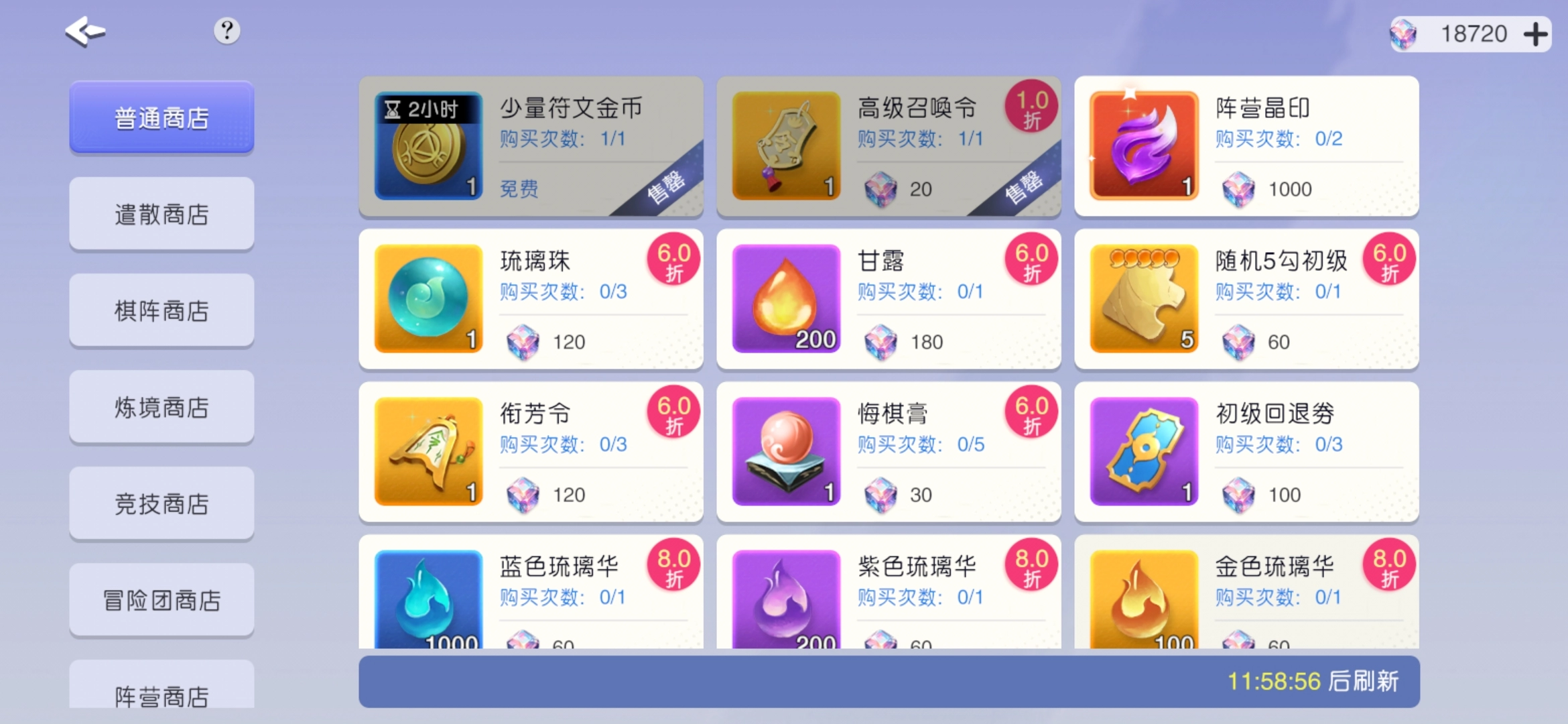2、商店兑换:普通商店兑换前两个,参照图2,前期根据需求购买,比如甘露,通常9星之后会短缺。遣散商店建议兑换牛或秦,可作为光暗材料,牛也能上阵。竞技商店中,高级币兑换光暗角色,低级币兑换刘轩、公孙这类,前期平民玩家可组相关阵容,升星较容易。阵营商店优先选择黑山诸葛,属于版本T0角色。神秘商店可兑换600钻的阵营抽卡,前期也能换甘露等,若钻石充足,按需求购买,注意别过度消费。